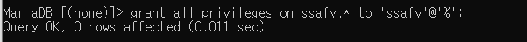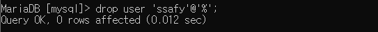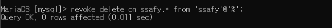 모든 권한을 부여한 ssafy 계정에서 delete 권한을 회수