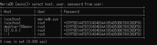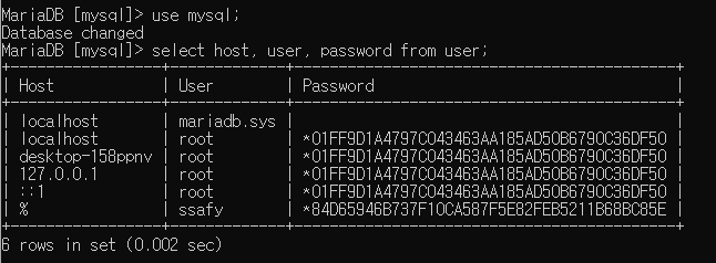 select host, user, password from user;